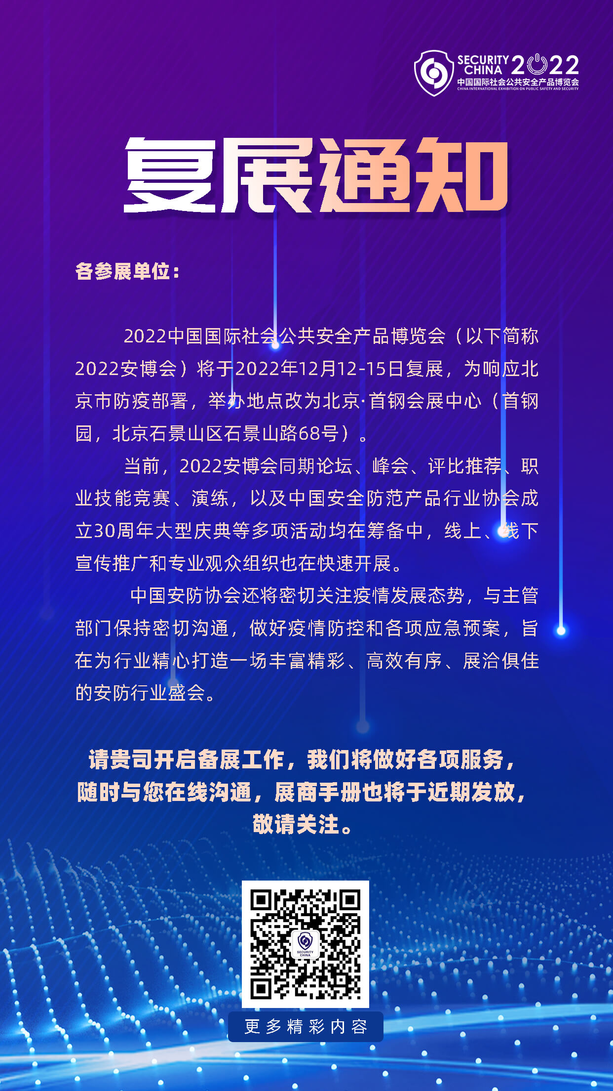 2022中國(guó)國(guó)際社會(huì)公共安全產(chǎn)品博覽會(huì)復(fù)展說明